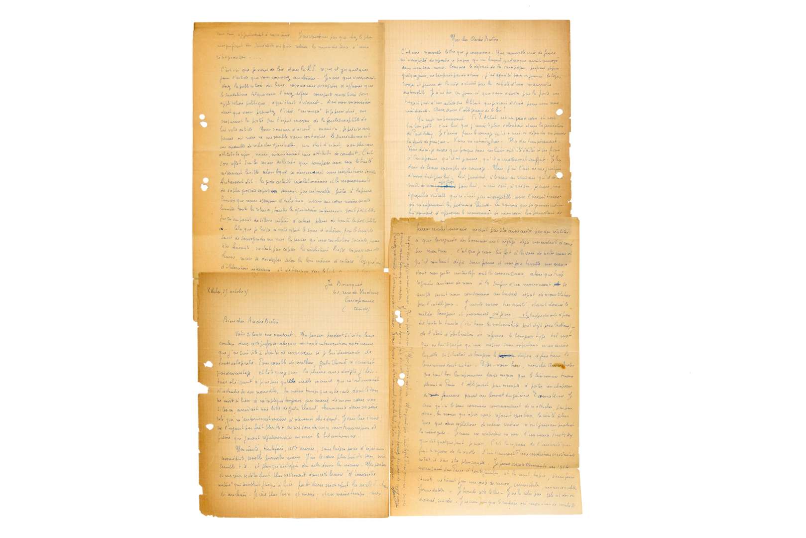 L.A.S. « Joe Bousquet » (signée en tête), Villalier 25 octobre 1925, à André BRETON ; 6 pages in-4 à l’encre bleue (trous de classeur, quelques bords un peu effrangés).