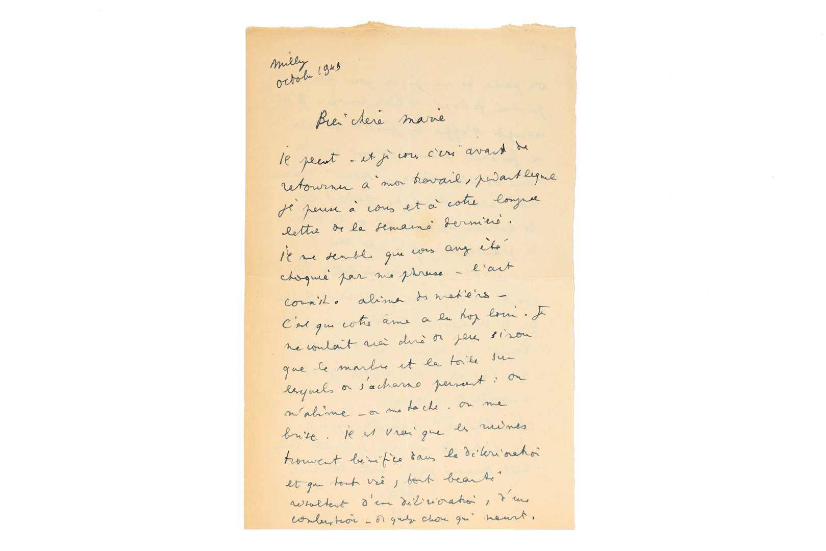 L.A.S. « Jean », Milly, octobre 1949, à sa traductrice anglaise Mary HOECK ; 2 pages in-4.
