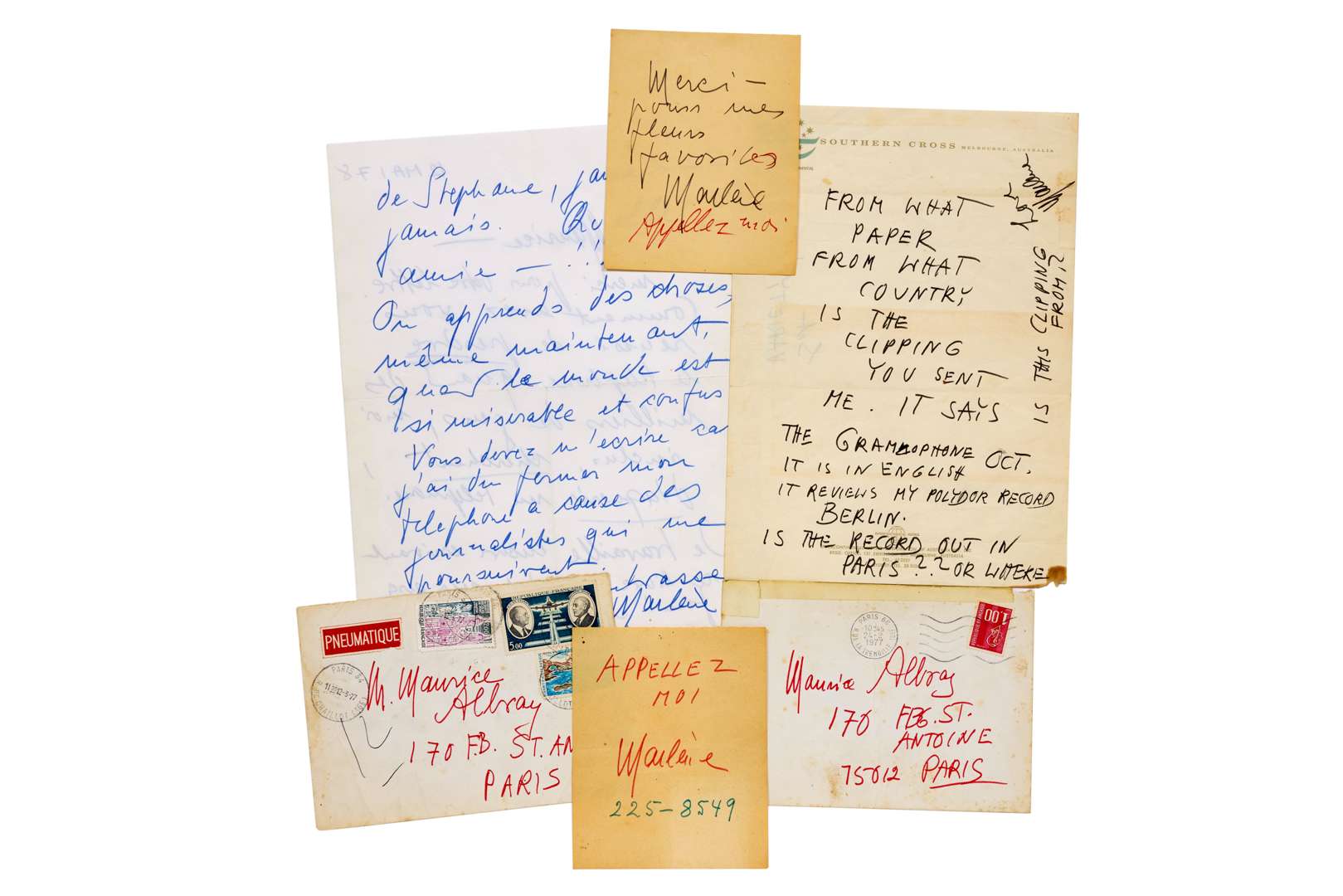 3 L.A.S. « Marlene », Paris 1977-1978, au costumier Maurice ALBRAY ; 3 pages in-4 (une à en-tête du Southern Cross Melbourne) et 2 pages in-12, 3 enveloppes timbrées.