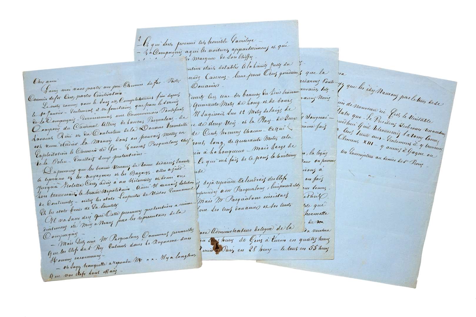 MANUSCRIT autographe, signé « un Souscripteur au denier de St Pierre » ; 3 pages et demie in-4 sur papier bleu.