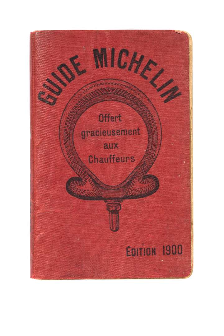 Offert gracieusement aux chauffeurs. Edition 1900. [Paris, 1900]. Petit in-12 (10 x 15 cm). 399 pp., illustrations en noir. Percaline rouge souple de l’éditeur, plats illustrés en noir. Véritable édition originale. Rarissime. Exemplaire de la première édition du prestigieux guide gastronomique datant de 1900, objet publicitaire alors offert aux chauffeurs par la marque de pneumatiques. Tiré à 35 000 exemplaires seulement, ce premier guide est aujourd'hui une véritable rareté . Gratuit jusqu'en 1922, il deviendra payant puis distinguera les meilleurs restaurants par des étoiles à partir de 1926. Michelin avait pour vocation d'aider l'automobiliste à "appovisionner son automobile, pour la réparer, lui permettre de se loger et de se nourrir" (in Avant-propos). Après quelques conseils mécaniques sont listées les villes de France avec leurs "Dépôts d'Essence" et cafés ou restaurants, puis des conseils techniques selon les modèles de voiture… En français dans le texte, 327. Qques graffiti au crayon sur les pages, sans gravité. Dérelié, qques salissures discrètes et une pliure centrale à la couverture. GASTRONOMIE.
