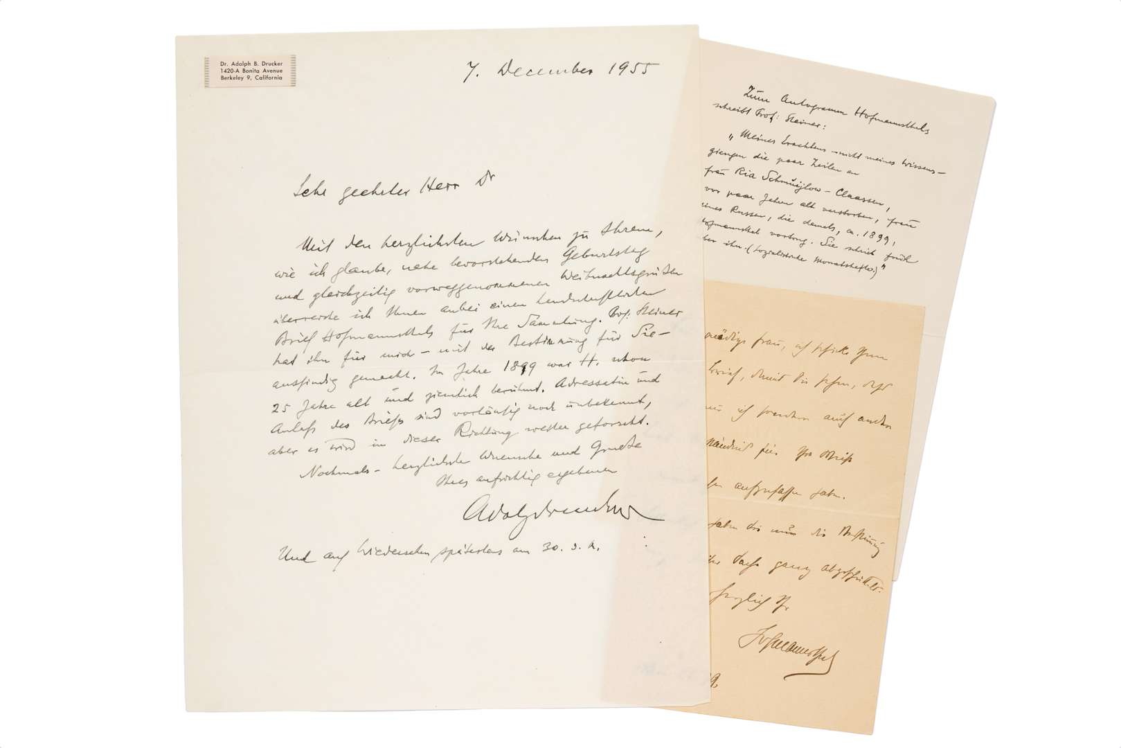 On joint une l.a.s. du Dr Adolph Drucker, offrant cette lettre à un collectionneur (Berkeley 7 décembre 1955).