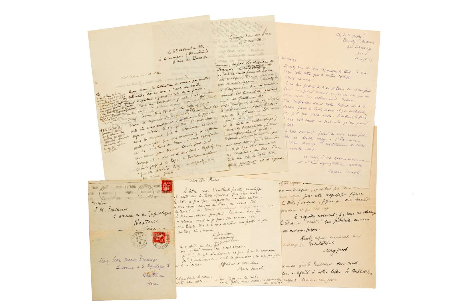 4 L.A.S. « Max Jacob », 1935-1936, à Mario PRASSINOS ; 6 pages in-4, enveloppes timbrées.