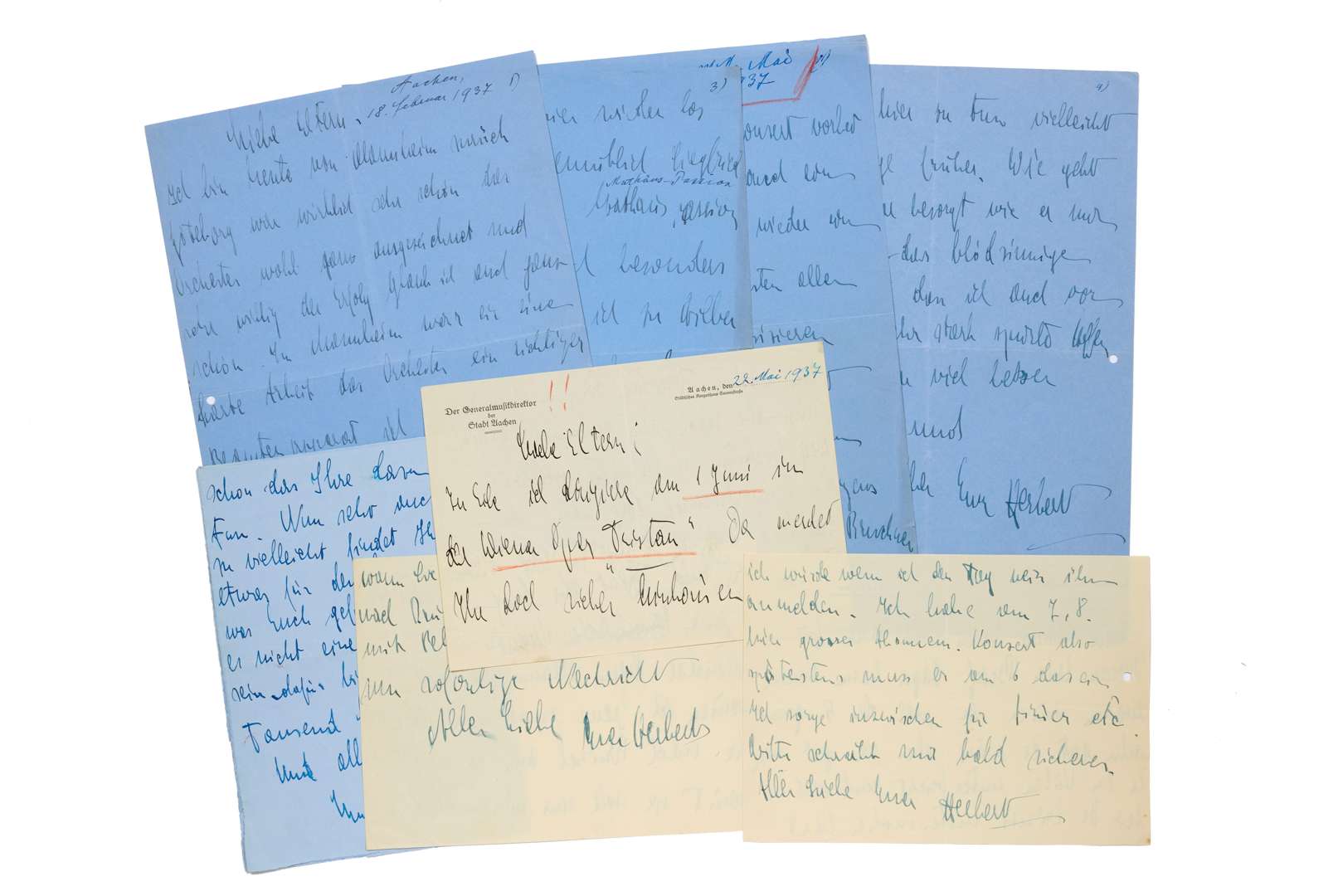 7 L.A.S. « Herbert », Aachen [1936]-1937, à ses parents ; 22 pages in-8 ou in-4, 3 à en-tête Der Generalmusikdirektor der Stadt Aachen (trous de classeur à qqs lettres) ; en allemand.