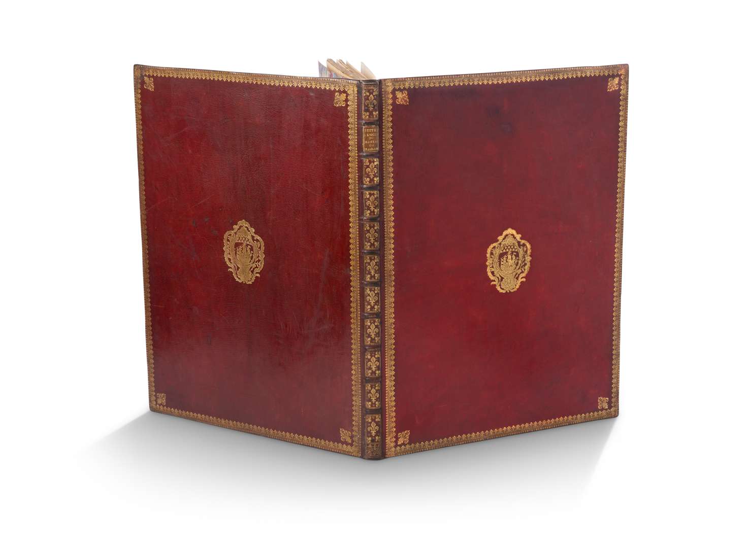 In-plano. Maroquin rouge de l’époque aux armes, dos orné de caissons
