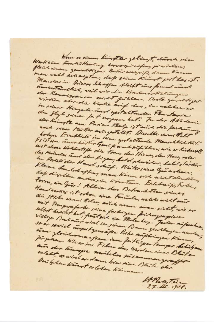 MANUSCRIT autographe signé « HMPechstein », 27.III.1928 ; 1 page in-4 ; en allemand.