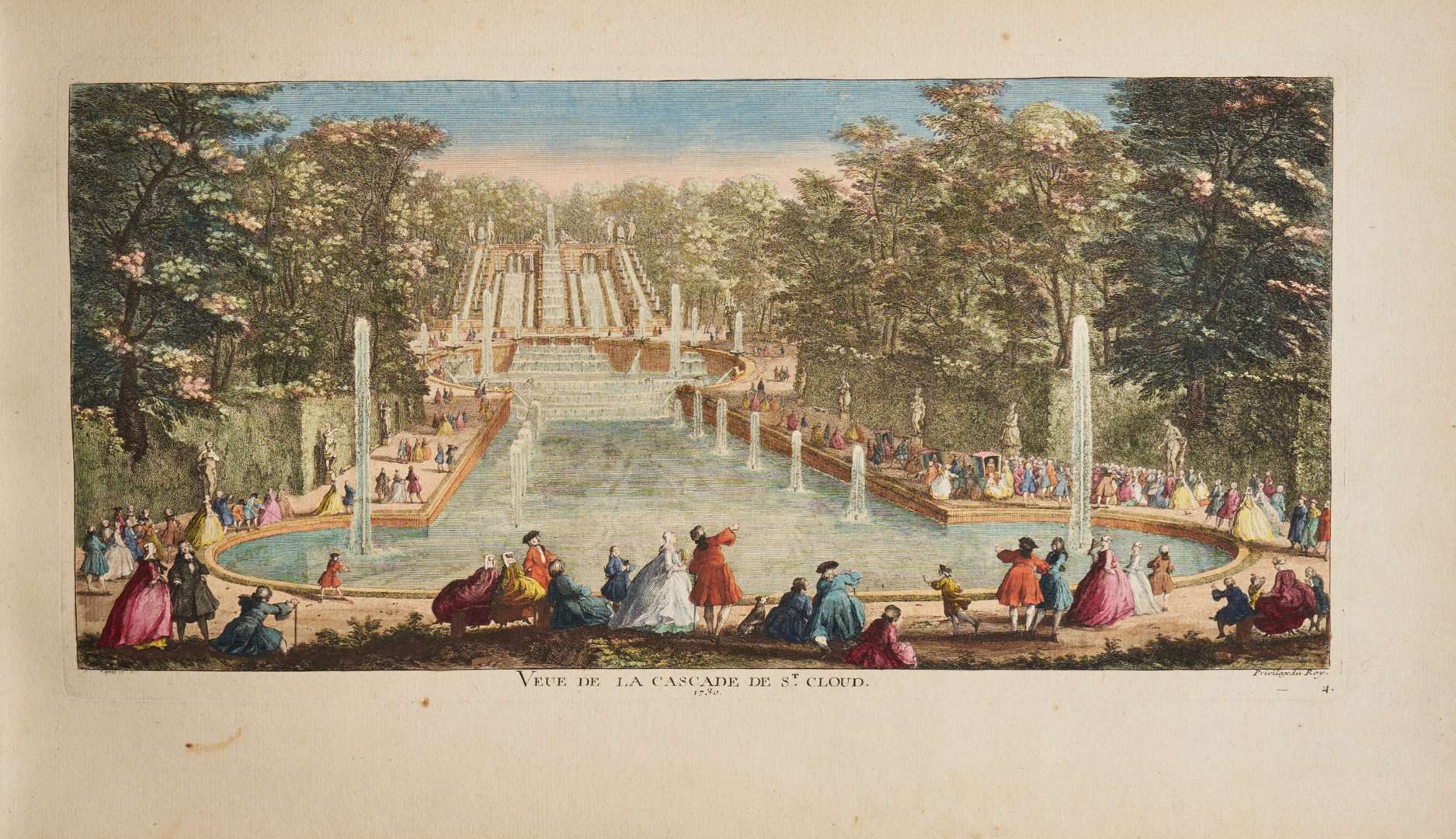Représentant des vues ou scènes de Paris et des environs de Paris, Versailles, St Cloud, Meudon et Chantilly. Elles évoquent les palais royaux français, les châteaux et jardins ou parcs ornementaux, les monuments…