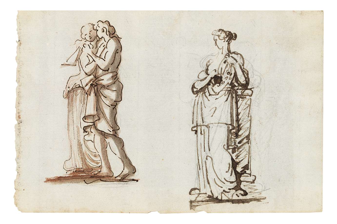 Plume et encre brune, lavis noir et sanguine