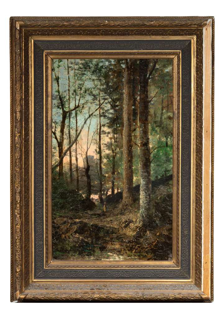Figure dans un sous-bois au crépuscule