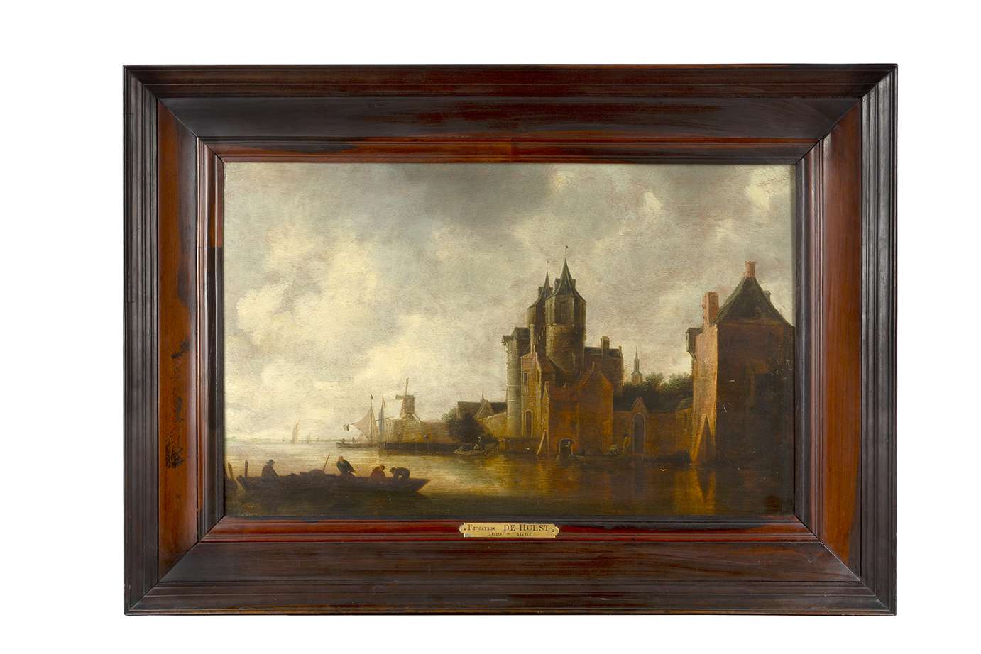Peintre hollandais spécialisé dans la représentation de paysages, Frans de Hulst, né à Haarlem, y accomplit l’essentiel de sa carrière. Ses premières œuvres révèlent une proximité stylistique avec celles de Salomon van Ruysdael (1602-1670), laissant supposer qu’il aurait pu être formé dans son atelier ou sous son influence directe. Aucune source documentaire ne permet toutefois de confirmer cette hypothèse. En 1631, Frans de Hulst est admis à la guilde de Saint-Luc de Haarlem. Il y occupe par la suite des fonctions importantes, étant nommé secrétaire de la guilde en 1642.