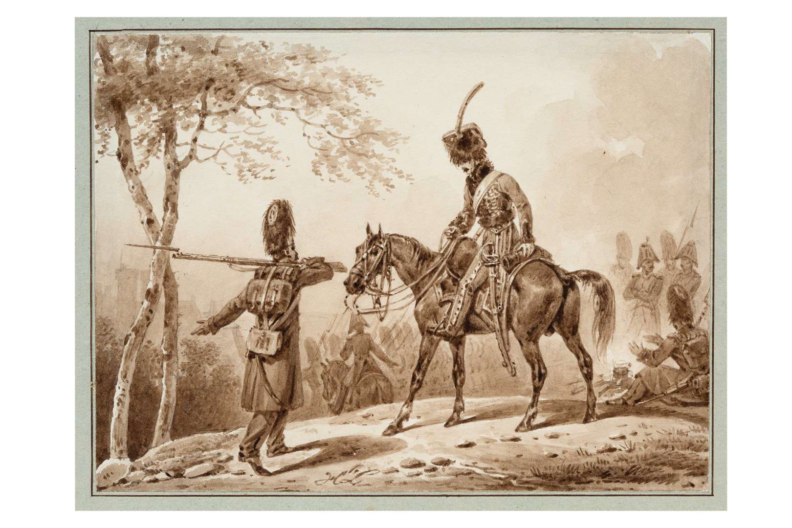 Plume, encre brune et lavis brunMonogrammé en bas au milieu H.L.10,5 x 14 cm - 4 1/8 × 5 1/2 in.