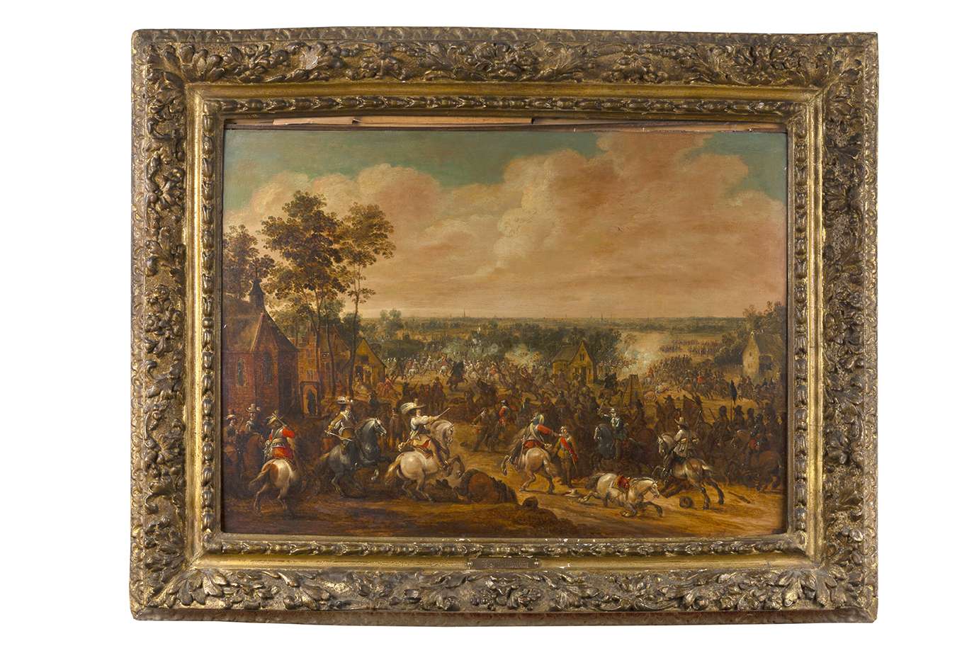 Peintre de batailles, Pieter Meulener est le fils de Jan Molenaer (mort vers 1646) auprès duquel il reçut un premier apprentissage. Il entra ensuite dans l’atelier de Sebastien Vrancx (1573-1647) puis devint maître au sein de la Guilde d’Anvers dans les années 1631-1632. Notre peintre a vu le travail du batailliste Peter Snayers (1592-1667) dont il retient il fougue des cavaliers sur leur monture cabrée, les teintes terreuses qu’il accentue et rehausse d’éclatantes pointes de rouge.