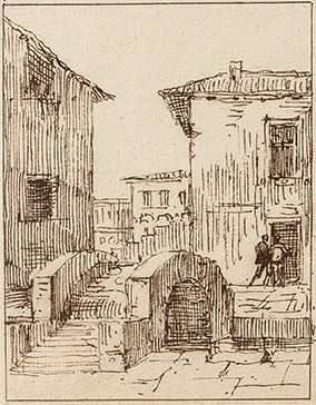 Ce riche fonds que nous présentons permet un aperçu des méthodes de l’artiste. Nicolle griffonne. Il griffonne des suites de figures aux attitudes diverses et multipliées, la façade d’une maison, la vue qu’il a d’un hameau à son approche, la prière intime d’une paysanne. Lorsqu’il colore, sa palette aquarellée, toujours douce, laisse planer sur l’ensemble une atmosphère où il fait bon vivre. C’est au fil de ses pérégrinations italiennes que nous suivons l’artiste, une Italie sur laquelle il pose un regard intimiste. Attiré sans doute par une forme de nostalgie, un goût certain pour les ruines, Nicolle vagabonde entre Rome, Florence, Venise et les campagnes qui les séparent. Dessinateur prolixe, il décline dans ses croquis le panorama d’un pays où se mêlent la vie quotidienne de ses habitants les plus modestes, celle de ses visiteurs d’un jour et des monuments millénaires dans les vestiges desquels il se perd. Disséminant ses figures parmi des études architecturales minutieuses, il renforce ainsi l’atmosphère pittoresque qui relie les dessins de son corpus.
