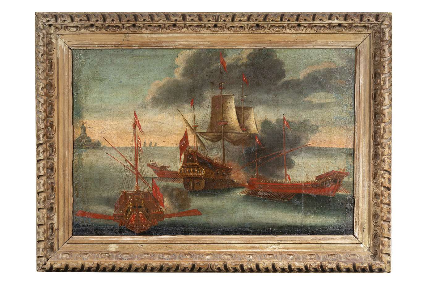 Ottoman galleon and galley of the Duchy of Savoy, canvas