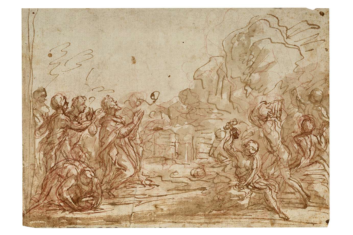 Religious history scene, brown wash and red chalk