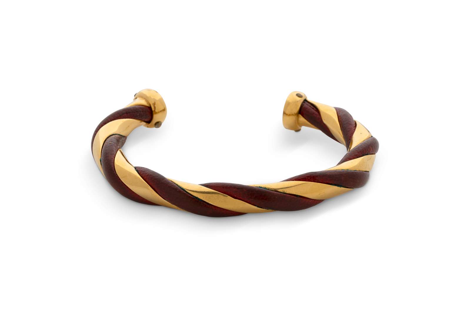 Bracelet Jonc en métal plaqué or et cuir rouge