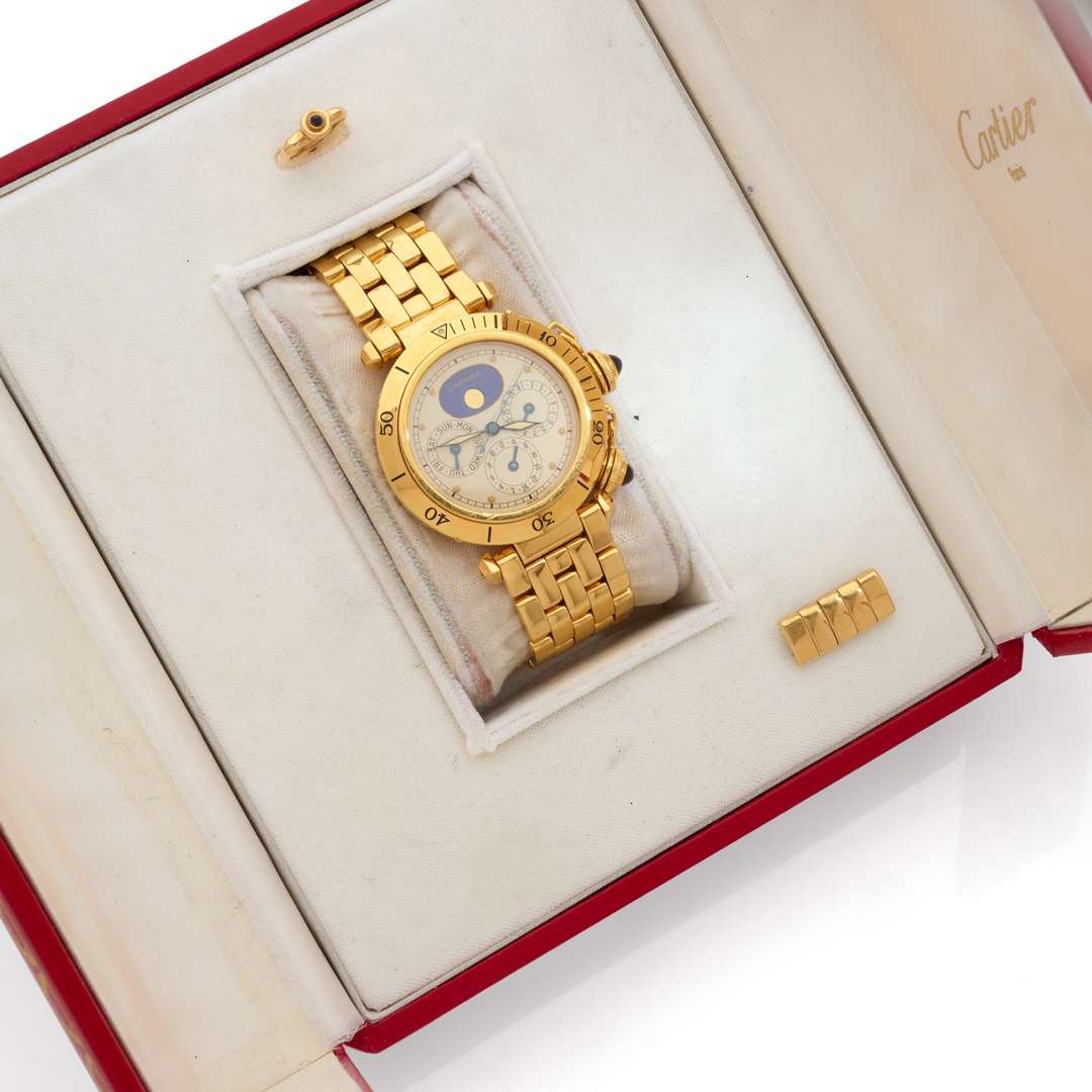 A yellow gold (18k) quartz wristwatch with calendar and moon phases