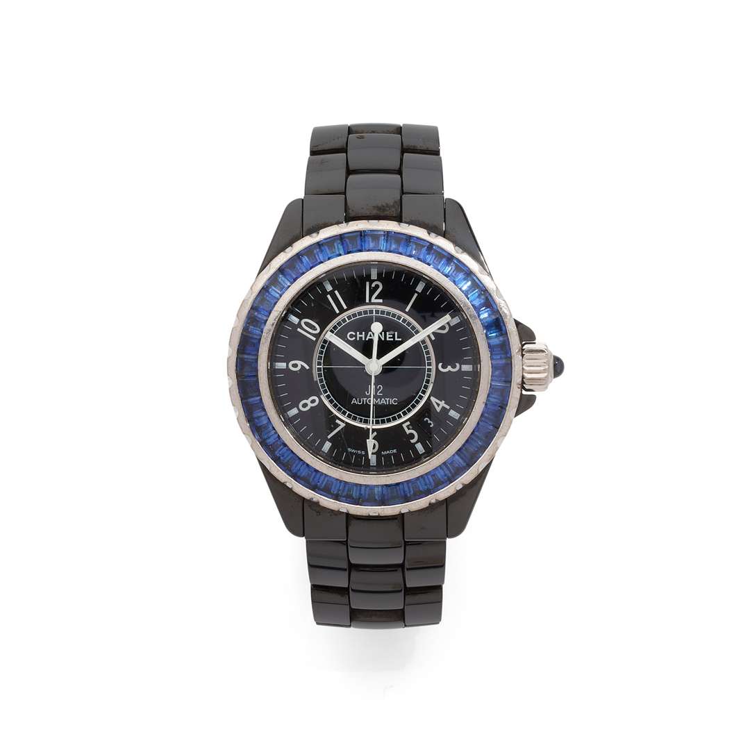 A ceramic and saphire self winding wristwatch