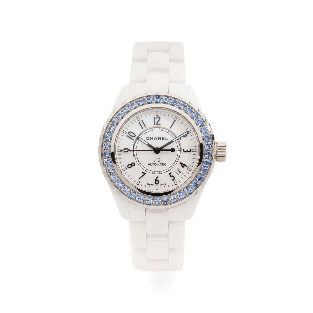 Montre bracelet en céramique, acier et saphirs