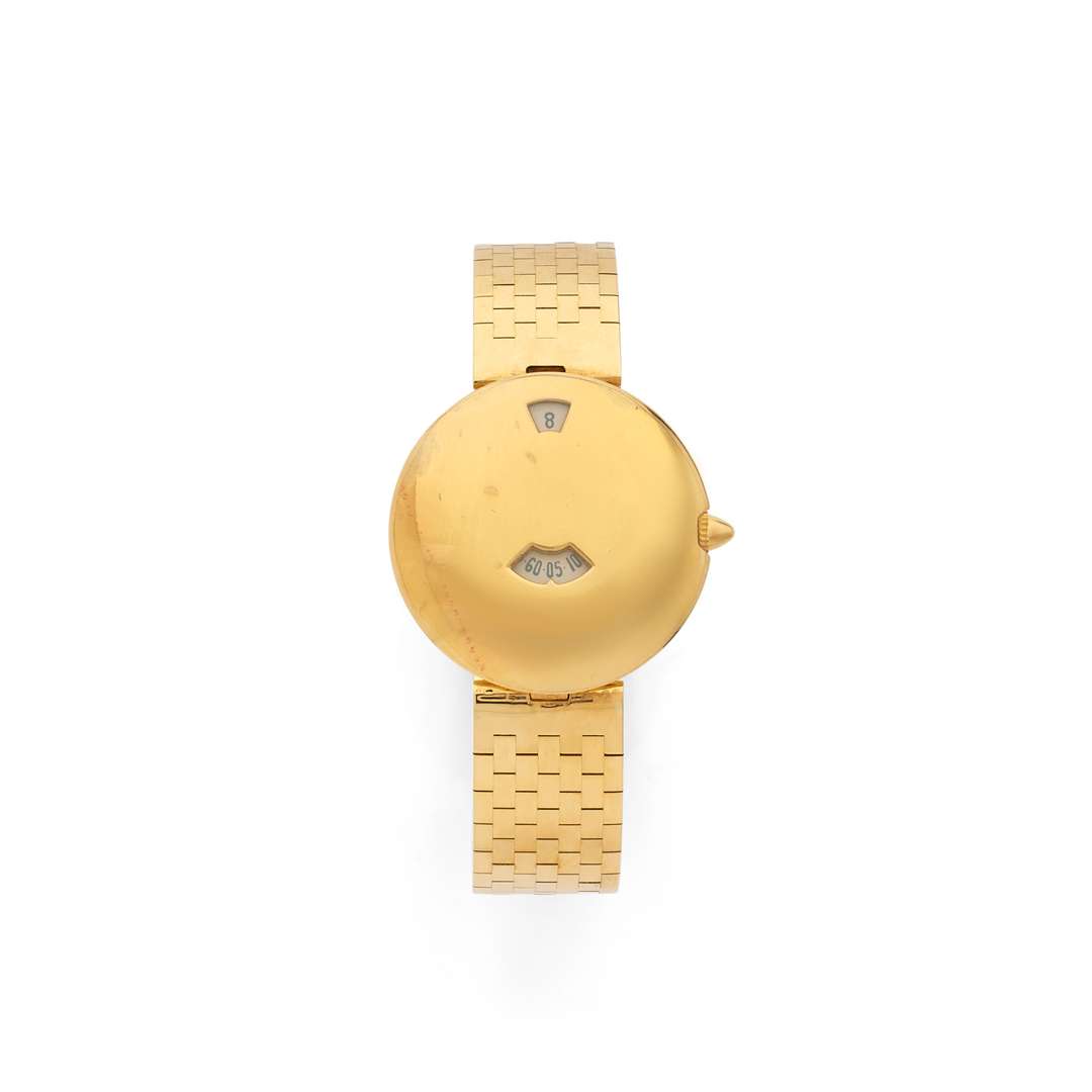 A 18k yellow gold quartz jumping hours wristwatch