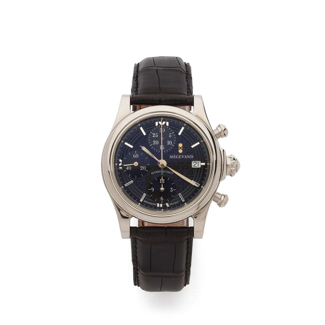 Cadran : noir, index appliqués, minuterie peinte, aiguilles grises, seconde centrale du chronographe, guichet date à 3h, compteur des 12 heures à 6h, petite seconde, compteur des 30 minutes à 12h, signé