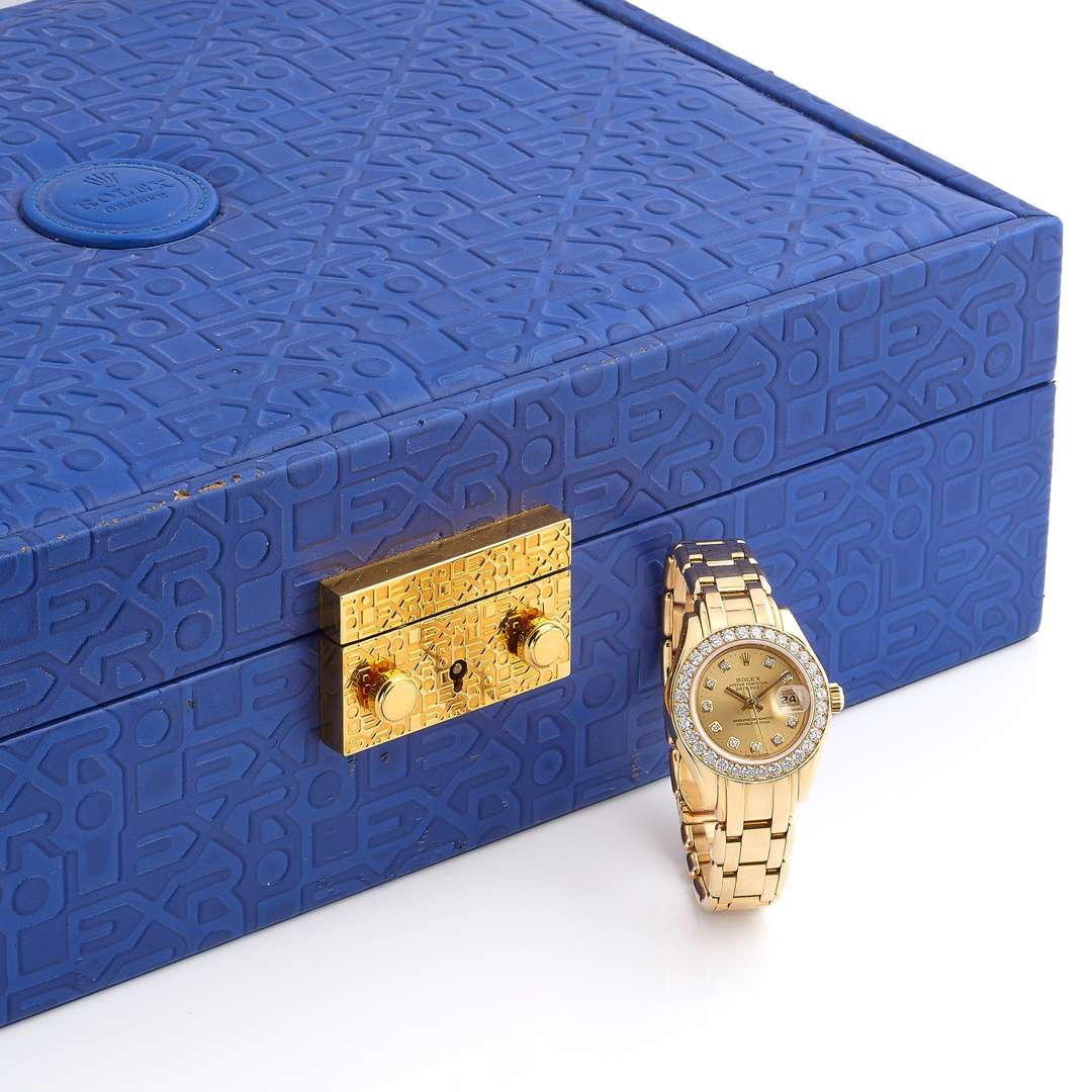 A 18k yellow gold and diamond automatic lady’s wristwatch with sweep center seconds and date indication
