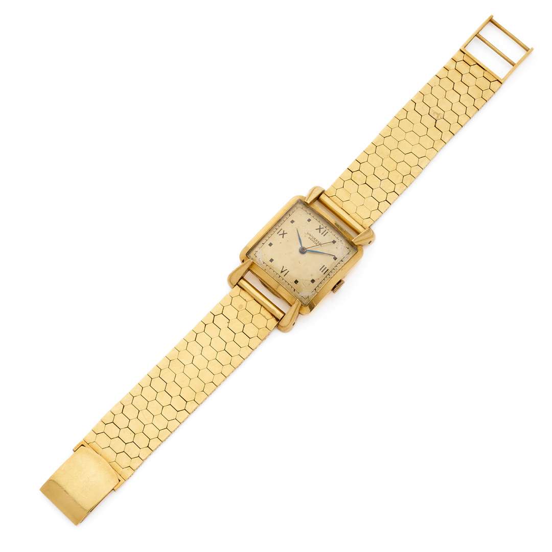 Boîtier : carré, couronne cannelée, fond clipsé, signé et numéroté