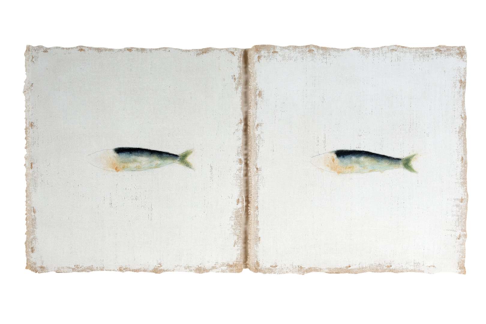 Two oils on unstretched canvas, both framed side by side and signed on the reverse