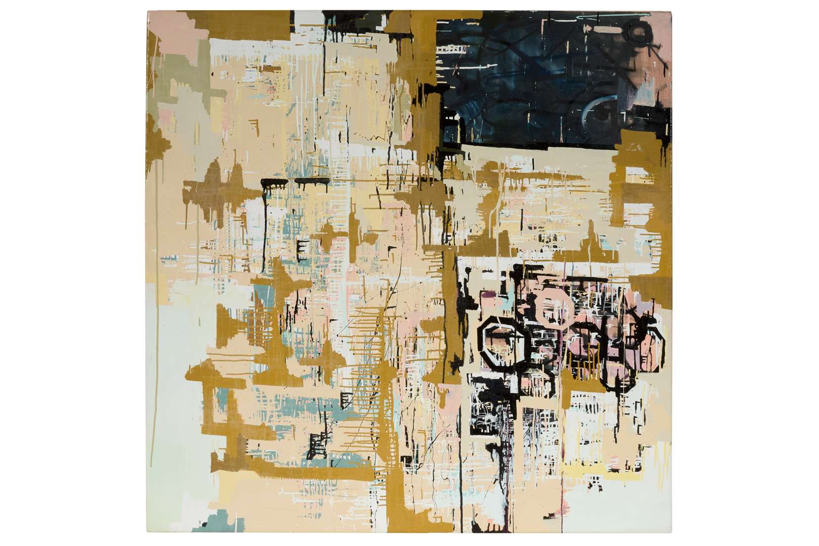 Oil, acrylic, sign paint on canvas, signed and dated on the reverse
