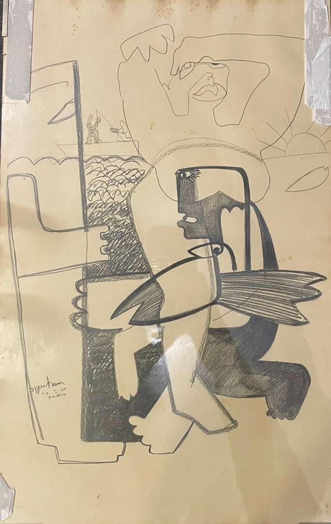 Crayon gras sur papier, signé, daté 10.3.70 et localisé Amiens en bas à gauche