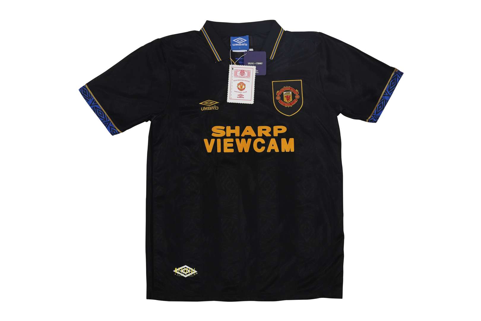 Maillot n°7 de Manchester United, Umbro, Taille L, signé par le joueur. Certificat d'authenticité (COA) sur demande.