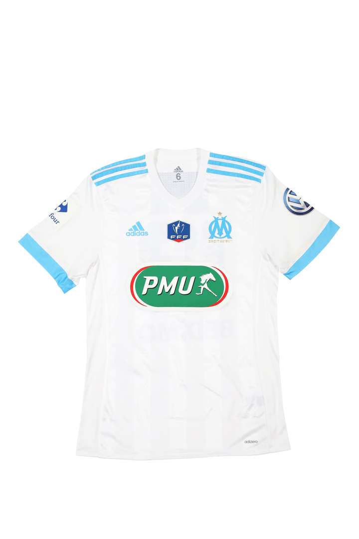 Maillot n°12 de l’Olympique de Marseille préparé pour le ¼ de finale de Coupe de France face au PSG le 26 février 2018. Le joueur ne joue pas ce match. Marque Adidas. Modèle Adizero. Taille 6. Certificat d'authenticité (COA) sur demande.