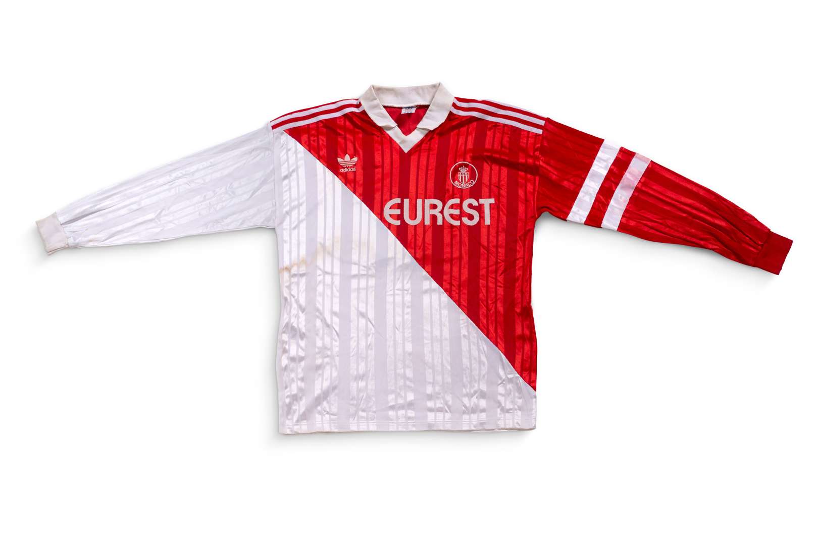Maillot n°2 de l'AS Monaco porté pour la saison 1994-1995 du championnat de France de 1ère Division. Match à déterminer. Le joueur joue 30 matchs. Marque Adidas. Taille L. Certificat d'authenticité (COA) sur demande.