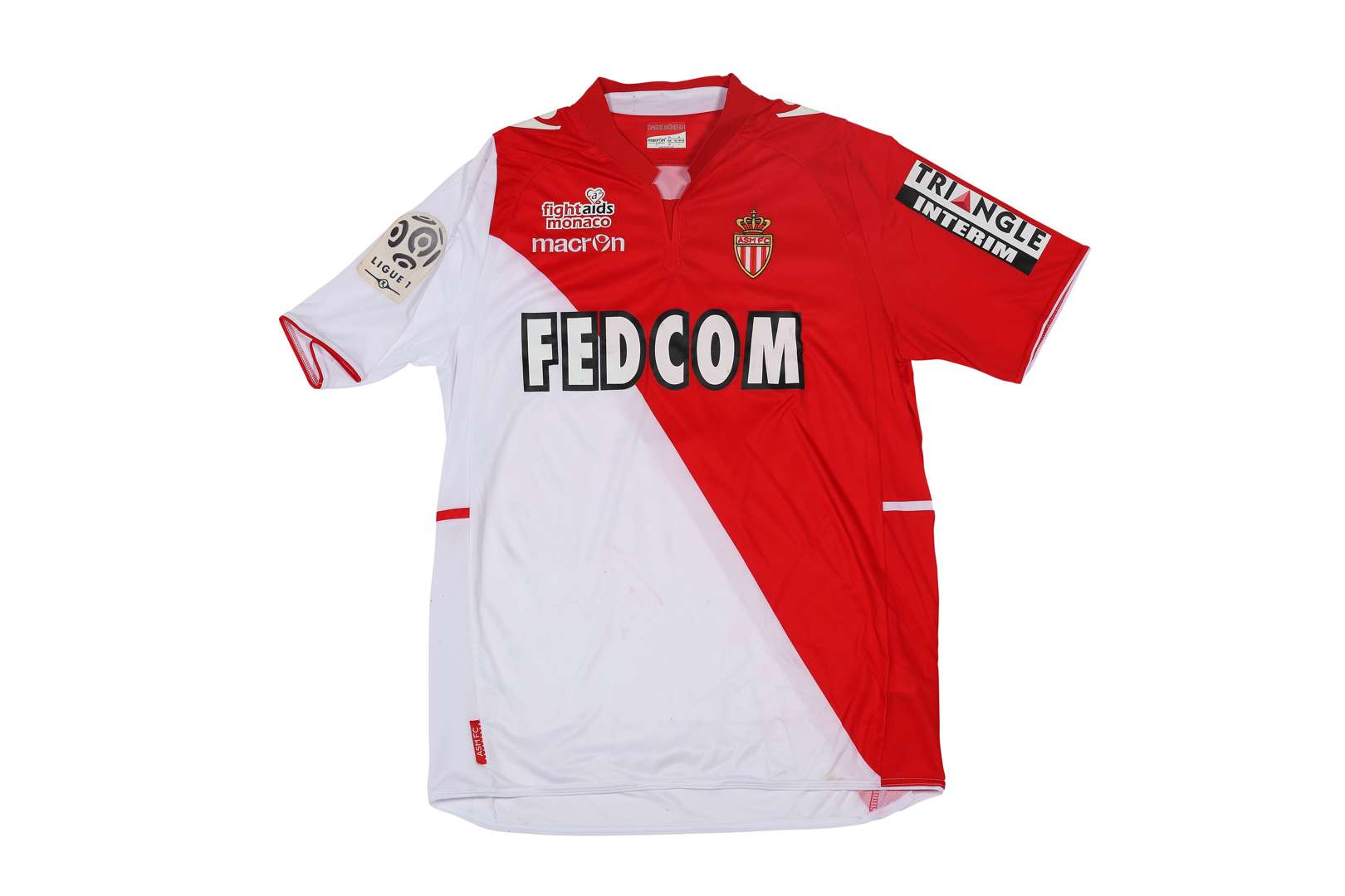Maillot n°9 de l'AS Monaco préparé pour un match du championnat de France de Ligue 1, saison 2013-2014. Signé par le joueur. Match à déterminer. Marque Macron. Taille XL. Certificat d'authenticité (COA) sur demande.