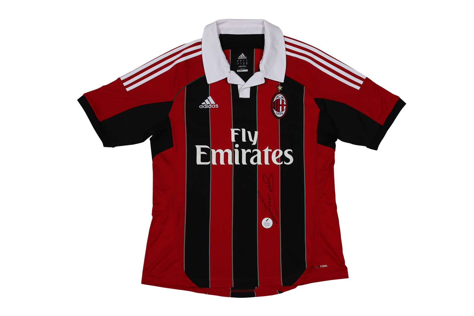 Maillot n°10 du Milan AC signé par Ruud Gullit. Marque Adidas. Modèle Climacool. Taille L. Certificat d'authenticité (COA) sur demande.