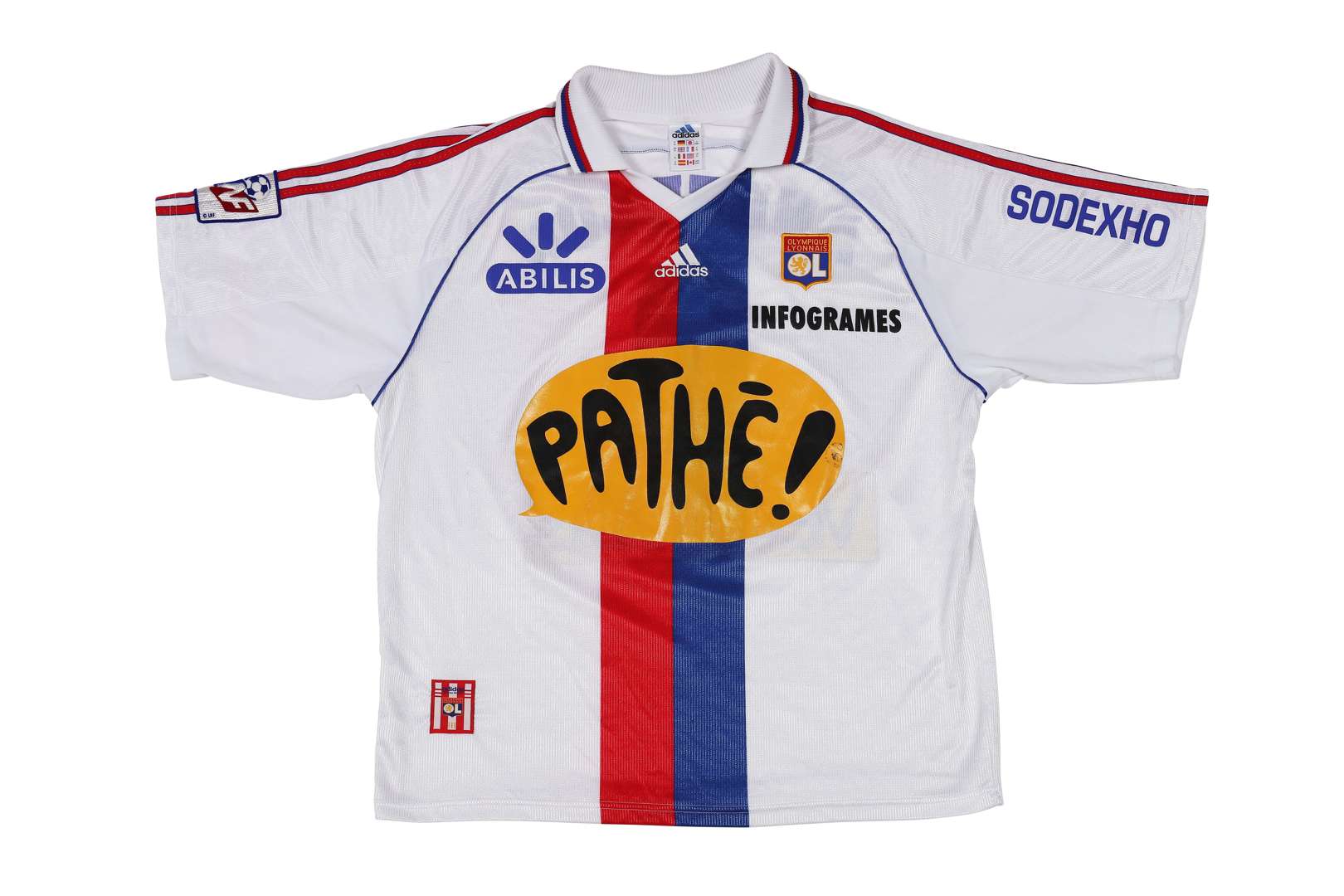 Maillot n°9 de l'Olympique Lyonnais préparé pour la saison 1999-2000 du championnat de France de Ligue 1. Match à déterminer. Le joueur joue 32 matchs. Marque Adidas. Taille XL. Fabriqué au Royaume Uni. Certificat d'authenticité (COA) sur demande.