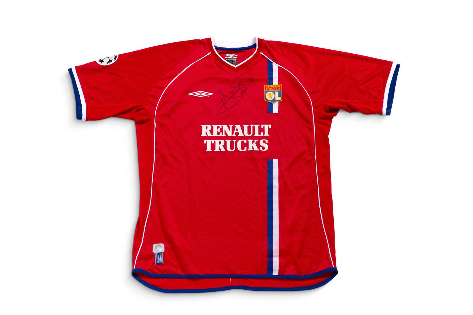 Maillot n°14 de l'Olympique Lyonnais préparé pour la saison 2002-2003 de Ligue des Champions. Match à déterminer. Le joueur joue 4 matchs. Autographe du joueur à l'avant. Marque Umbro. Modèle Vap Tech. Taille XL. Certificat d'authenticité (COA) sur demande.