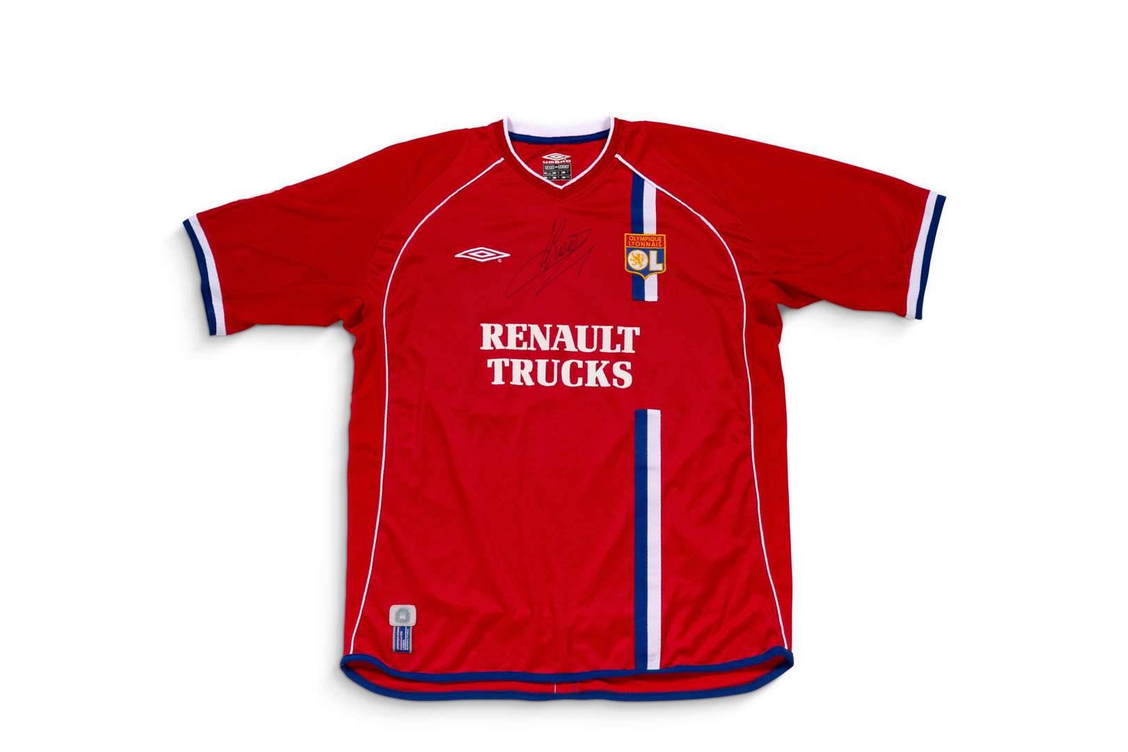 Maillot N°24 de l'Olympique Lyonnais préparé pour la saison 2002-2003 de Ligue des Champions. Match à déterminer. Le joueur joue 6 matchs. Autographe du joueur à l'avant. Marque Umbro. Modèle Vap Tech. Taille XL. Certificat d'authenticité (COA) sur demande.