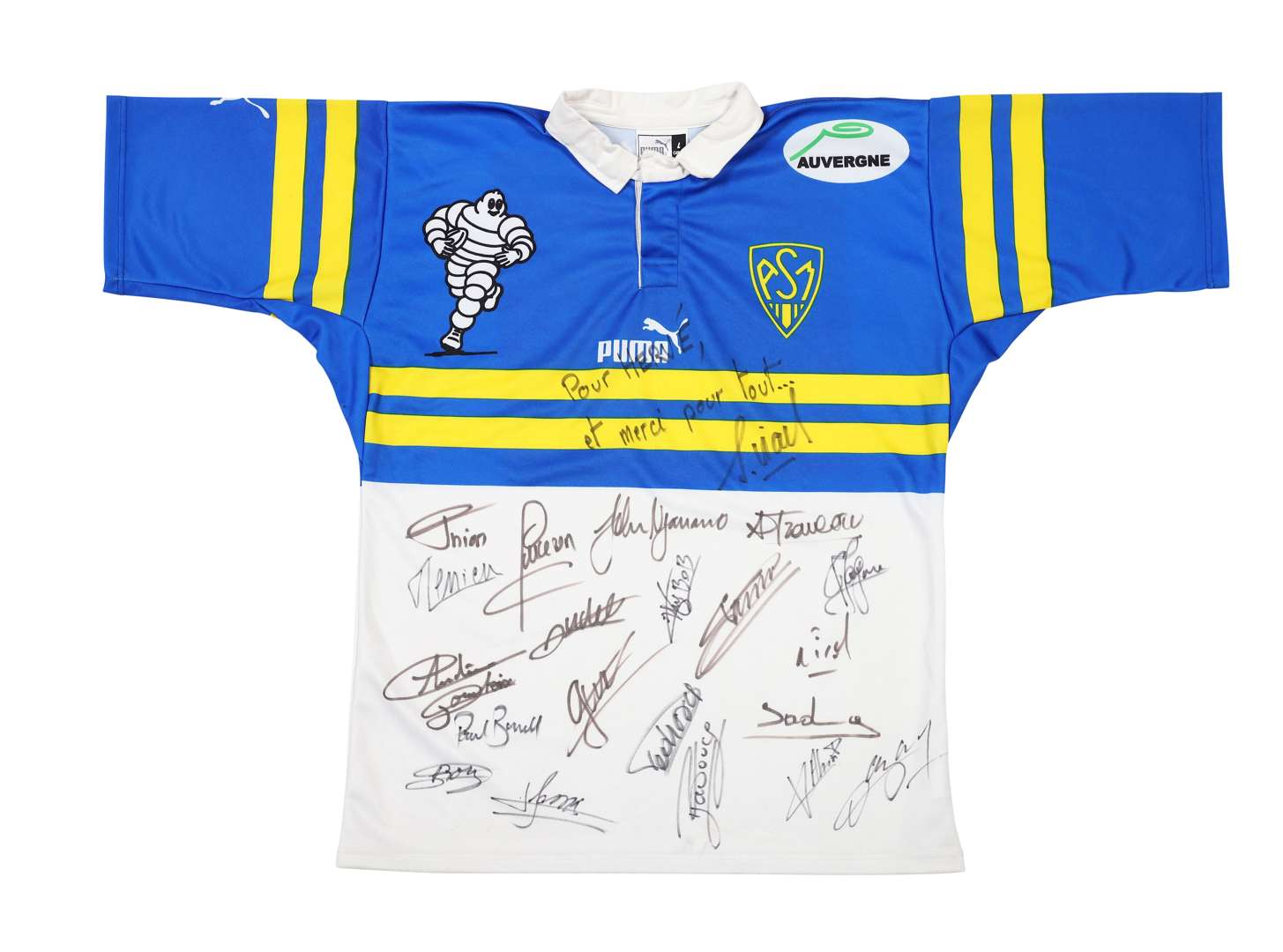 Maillot Replica de l'ASM Clermont Ferrand signé par les joueurs. Marque Puma. Taille L. Certificat d'authenticité (COA) sur demande.