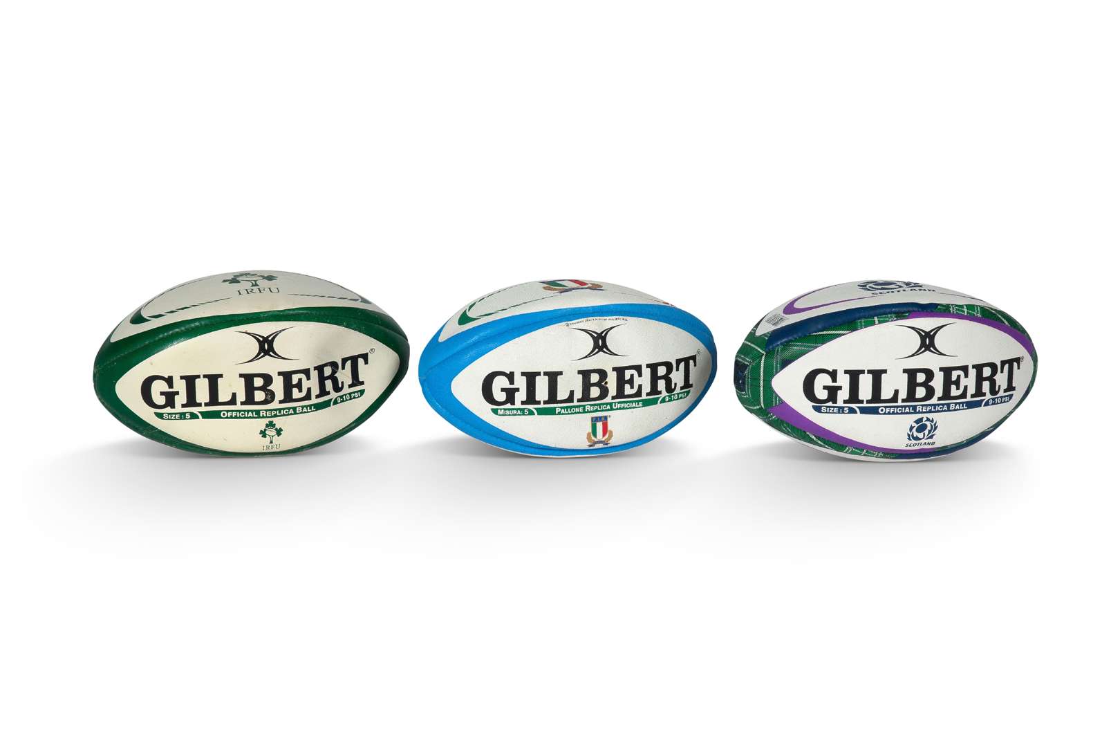 Lot de 3 ballons Replica Ecosse, Irlande et Italie. Marque Gilbert. Certificat d'authenticité (COA) sur demande.