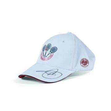 Casquette blanche et ocre Roland Garros signée par le joueur. Certificat d'authenticité (COA) sur demande.