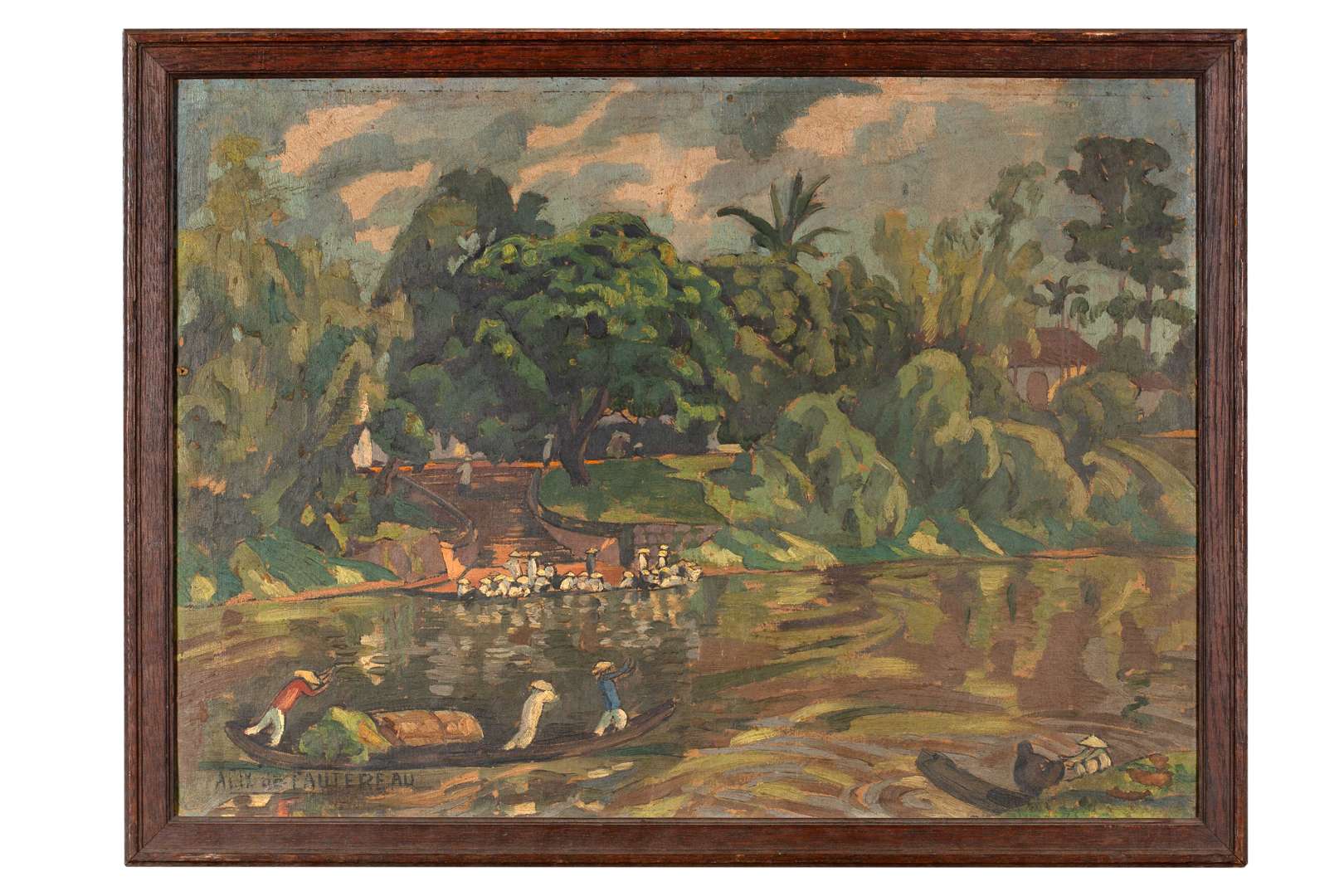 Cette œuvre peut être rapprochée d’une autre huile sur carton, représentant des pêcheurs sur leur sampan dans un paysage verdoyant, peinte vers 1928 et répertoriée sous le numéro HT 44 dans le catalogue raisonné en ligne de l’artiste.